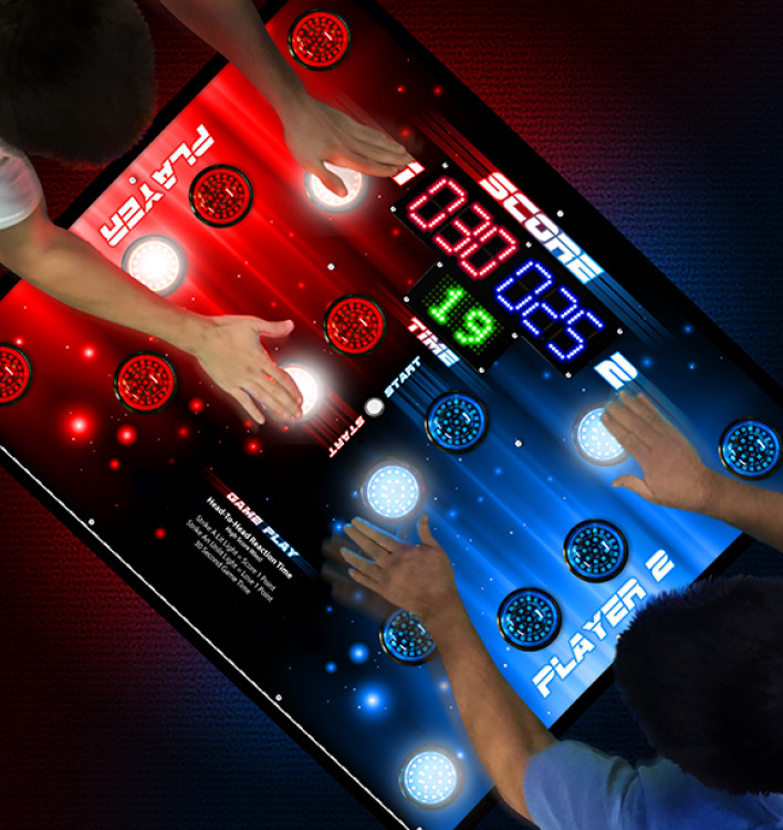 Strike A Light is a high-energy, tabletop reaction game perfect for parties, team-building, or arcade-style events. Two players face off at a sleek LED-lit board and race to hit flashing targets as fast as they can. The unit features multiple illuminated pads, a digital score and countdown display, and clear start/score indicators so guests instantly understand the objective: light up your side, smash the active pads, and out-react your opponent. Fast-paced rounds are short and addictive, making it ideal for mixed-age crowds, carnival lanes, or corporate events where quick play rotations keep lines moving.